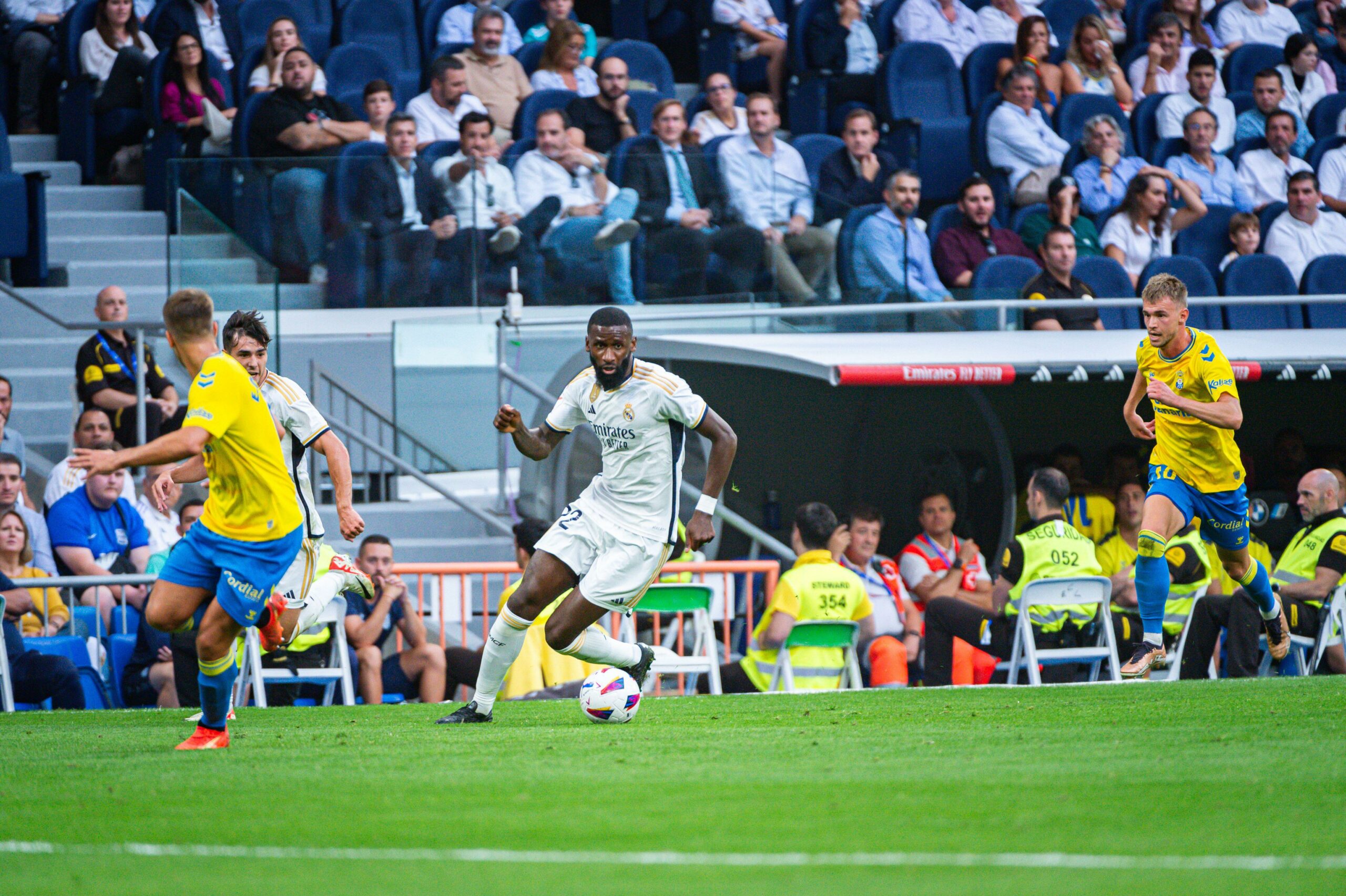 Jogador vestindo a camisa vermelha e branca do Girona, disputando a bola com um oponente de uniforme verde.